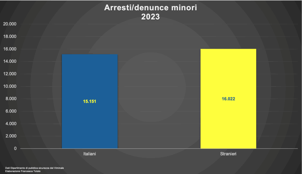 Da quanto emerge nel rapporto del Dipartimento di pubblica sicurezza del Viminale, nel 2023, il 51 per cento degli arresti e delle denunce di minorenni ha riguardato stranieri. Addirittura, su 315 minori segnalati per il reato violenza sessuale, 177 erano stranieri, il 56 per cento.