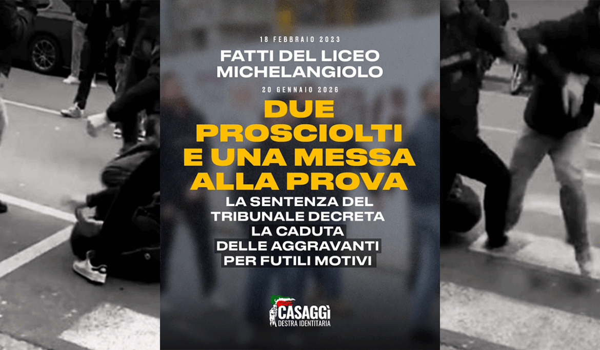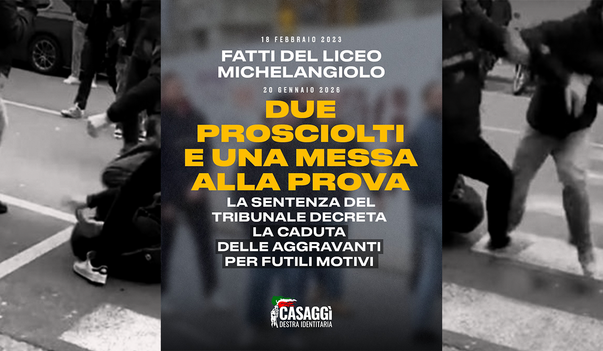 Già nei giorni immediatamente successivi ai fatti, Il Primato Nazionale aveva pubblicato testimonianze e ricostruzioni ignorate dal racconto dominante. Un professore del liceo Michelangiolo, insieme a studenti e genitori, aveva parlato di provocazioni, insulti, strappi di volantini e clima intimidatorio nei confronti dei militanti di Azione Studentesca, presenti davanti alla scuola per un volantinaggio contro scuola digitale e globalizzazione. Elementi sistematicamente esclusi dal racconto mediatico, che ha preferito una lettura binaria e ideologica: aggressori e aggrediti stabiliti a tavolino, responsabilità individuali sostituite dall’appartenenza politica, processo celebrato prima nelle redazioni che nelle aule di tribunale. La sentenza di oggi non nega l’esistenza di uno scontro, ma ridimensiona radicalmente la sua strumentalizzazione. Dimostra che il “caso Michelangiolo” non era un’emergenza democratica, bensì un episodio circoscritto, trasformato artificialmente in simbolo per colpire un’area studentesca e, più in generale, un intero mondo politico e comunitario.