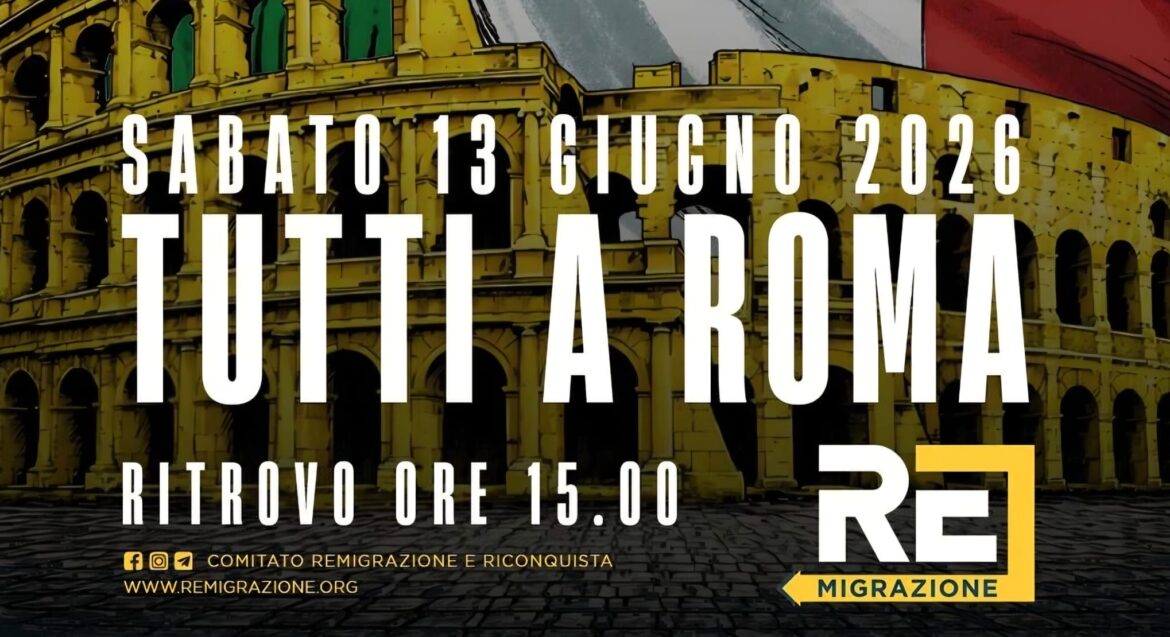 Scrive il Comitato ReR: “Il 13 giugno si concluderà la raccolta firme per la proposta di legge sulla remigrazione con un grande corteo nazionale che si terrà a Roma. Rivolgiamo un appello a tutti gli italiani che vogliono rialzare la testa. E che non intendono più tollerare il degrado, le violenze, il business e le distorsioni legate al sistema dell’immigrazione, che intendiamo smantellare pezzo dopo pezzo. Invitiamo ciascuno a portare con sé un tricolore. E a partecipare attivamente. Sarà una manifestazione popolare, aperta e trasversale. Auspichiamo prendano parte movimenti, associazioni, comitati e tutti coloro che non vogliono più rimanere inerti”.