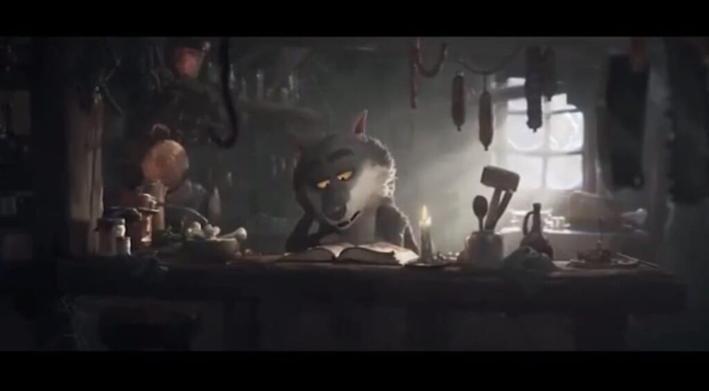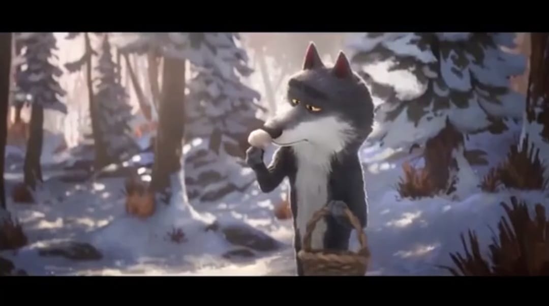 Questo perché si chiede al lupo di diventare ciò che non è. Tanto che nel suo tentativo di trasformazione (involuzione) il protagonista dal manto grigio intento a pescare sulla superficie ghiacciata di un lago si fa pure bullizzare da un simpatico airone.