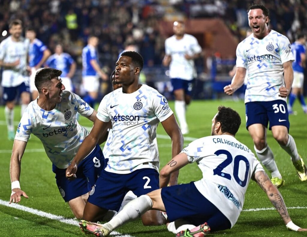 Succede di tutto al Sinigaglia. Gli uomini di Fabregas vanno sul doppio vantaggio ma a cavallo dei tempi vengono ripresi da Thuram. Poi la doppietta di Dumfries che lancia la Beneamata a più nove sul Napoli a sei partite dal termine. C’è ancora tempo per un regalo di Massa: il