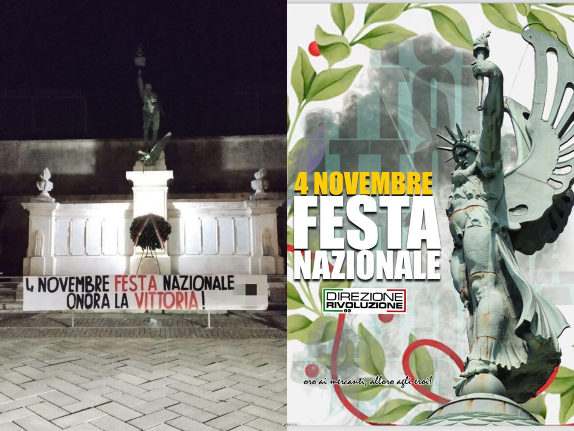 Lo striscione di CasaPound: “4 novembre Festa Nazionale. Onora la Vittoria”