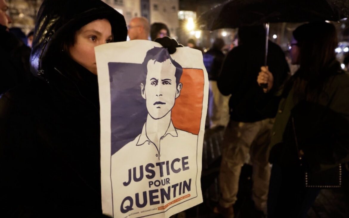 Il problema è che le risultanze ufficiali dell’inchiesta francese raccontano altro. Secondo quanto riportato da Le Monde, infatti, mercoledì 18 febbraio undici persone sono state ascoltate nell’ambito dell’indagine e sette sono state poste in stato di fermo con l’accusa di omicidio volontario. Il parquet di Lione – l’equivalente della Procura della Repubblica in Italia – parla chiaro: non una generica rissa tra fazioni, non una colluttazione simmetrica, ma responsabilità precise in relazione alla morte del giovane 23enne. Anche Le Point descrive una dinamica che smentisce la narrazione dell’“imboscata nera”. Le immagini trasmesse da TF1 – riprese da un balcone – mostrano un gruppo numericamente superiore che si accanisce su tre persone. Due riescono a divincolarsi, uno resta a terra. È Quentin. I colpi vengono inferti anche quando è già caduto. È da quei traumi cranici che deriverà la sua morte.